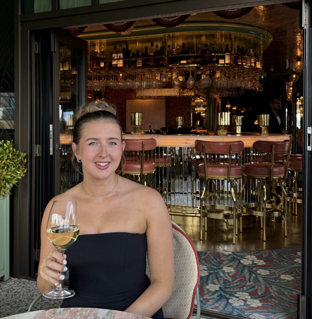 We kept it low-key with just a couple of glasses of wine and some classic nibbles (olives and crisps), but the menu is made for indulgence. Think champagne by the glass, caviar bumps, and beautifully crafted cocktails – all enjoyed in interiors that are just as gorgeous as the view. The space is dressed in dreamy pinks and deep greens, giving it a luxe but playful feel that’s so very Soho.