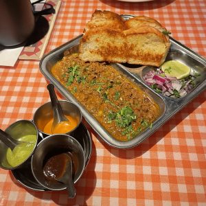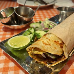 We tucked into their Keema Pau and Chicken Kathi Roll for a light lunch. The Keema Pau came served with a soft, buttery roll to dip into the saucy lamb keema curry, which had a perfect, gentle spice to it. The Kathi Roll was also delicious – and possibly my favourite of the two – a flaky paratha with a thin omelette-style layer, with a filling of smoky chicken tikka pieces, and a tangy chutney on the side.