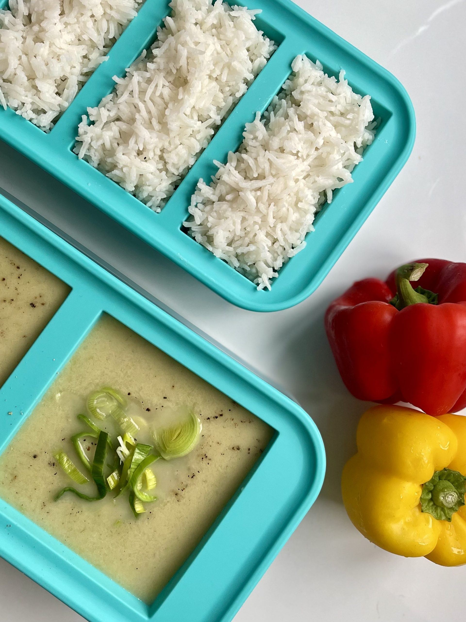 - Use Soupercubes – Honestly these are an absolute gamechanger. They’re essentially large, flexible ice cube trays that are perfect for portioning soups, stews, and sauces. To save even more space, once frozen, I’ll pop the cubes out and store them in airtight labelled freezer bags. My most used Soupercubes are the 1-cup trays for things like rice, curries, and stews and 2-cup trays for soups.