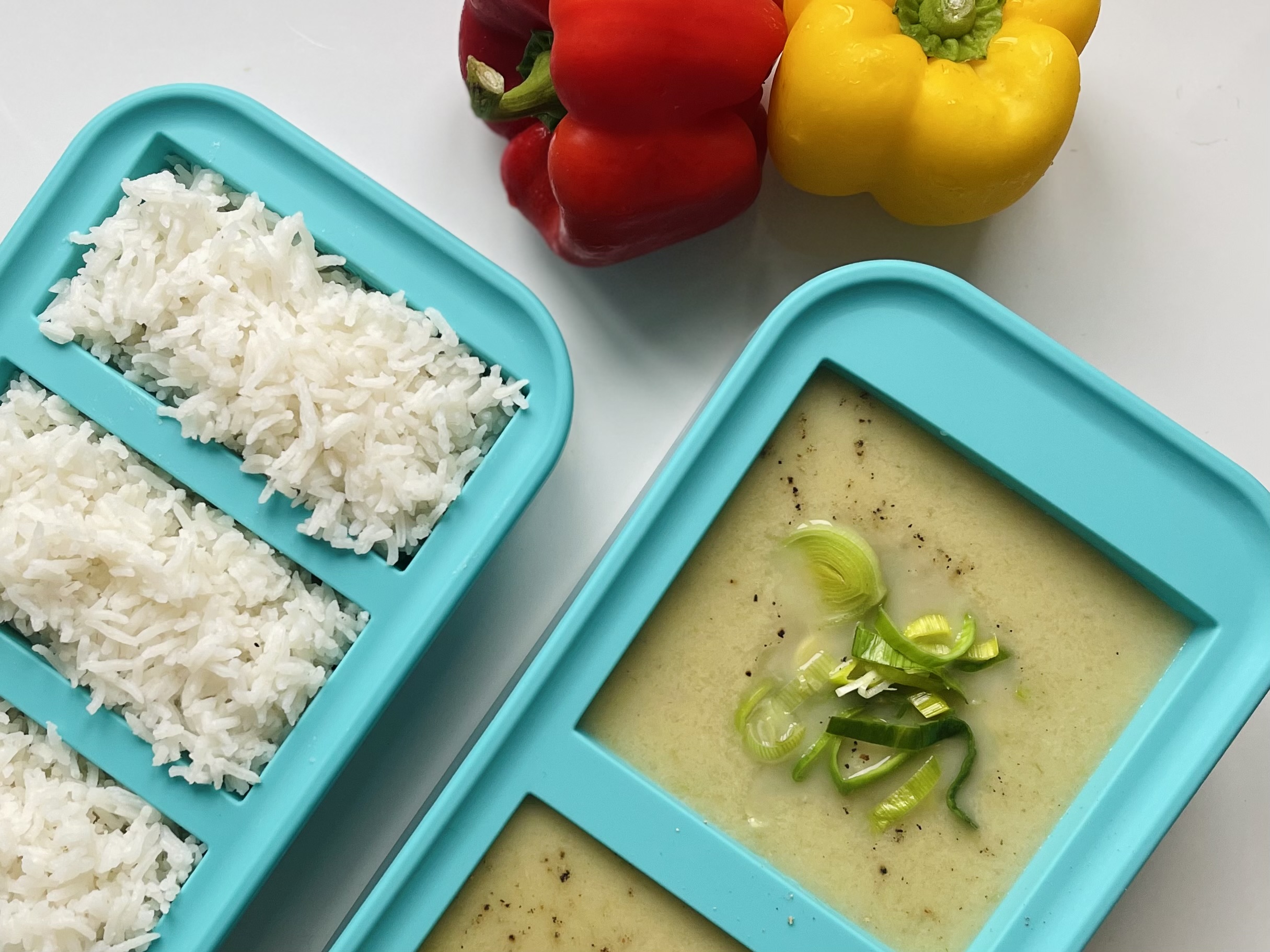 - Use Soupercubes – Honestly these are an absolute gamechanger. They’re essentially large, flexible ice cube trays that are perfect for portioning soups, stews, and sauces. To save even more space, once frozen, I’ll pop the cubes out and store them in airtight labelled freezer bags. My most used Soupercubes are the 1-cup trays for things like rice, curries, and stews and 2-cup trays for soups.
