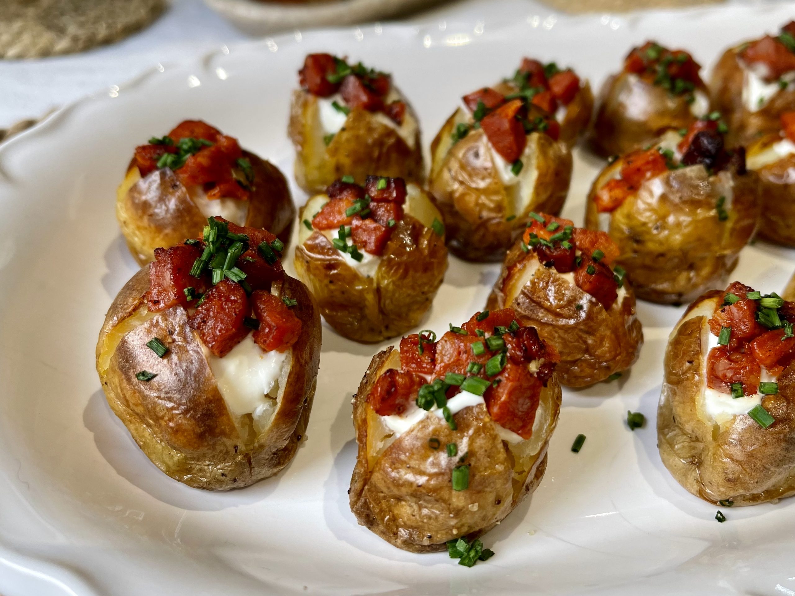 Yes absolutely – which makes hosting so much easier. Simply roast the potatoes and prepare the chorizo and chive toppings ahead of time. Just remember to store each element separately in the fridge and assemble the canapés just before serving to maximise freshness.