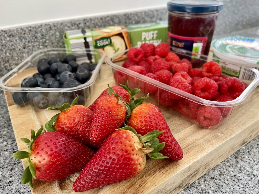 Top Tip: The berries will spread out and release juices whilst in the oven. So, to keep your puff pastry fruit tarts looking neat, try not to overfill them.