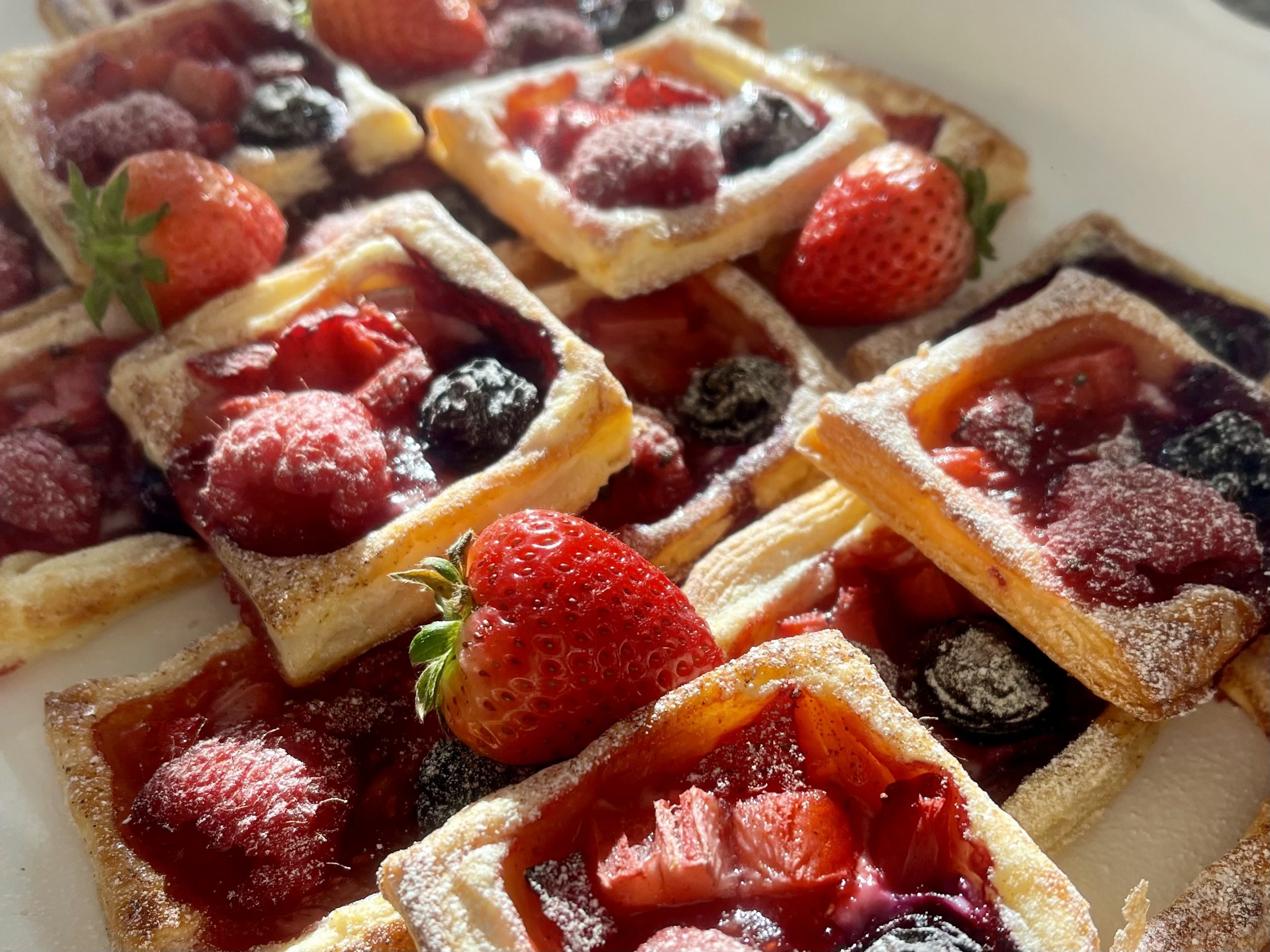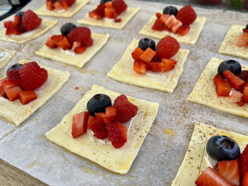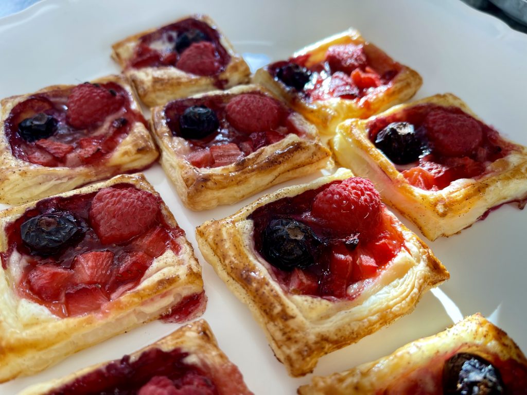 If you have any puff pastry fruit tarts leftover like we did, you can pop them in an airtight container and into the fridge for up to 2 days. Allow them to come to room temperature before enjoying the leftovers for maximum flavour.