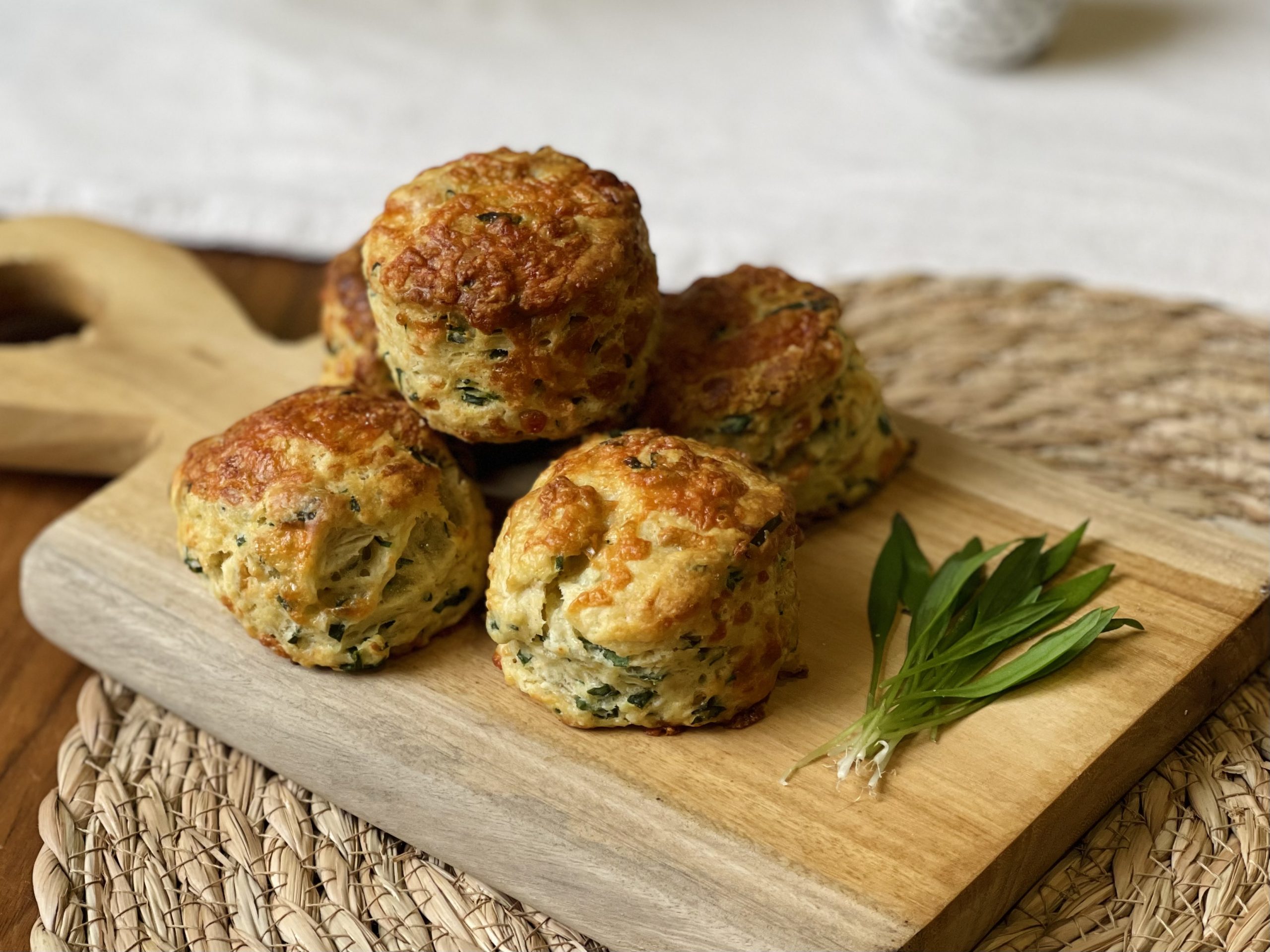 Known for its pungent aroma and delicate flavour, wild garlic pairs perfectly with the sharp aged cheddar in these scones, which get even better when slathered in perfectly salted butter!