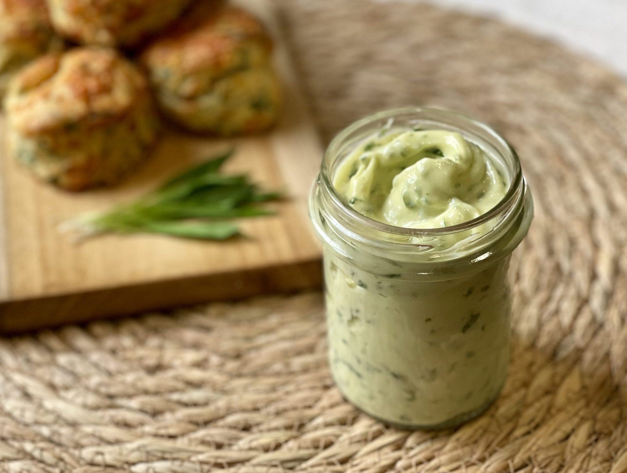 While wild garlic adds the best flavour to this mayonnaise, you can experiment with other spring herbs such as: